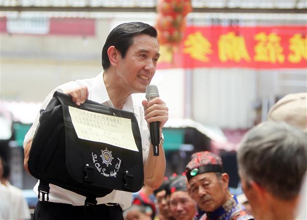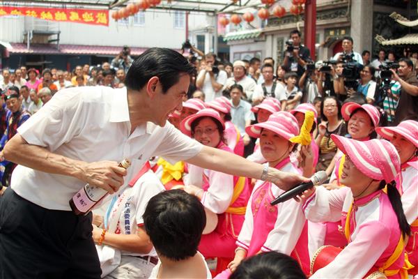 馬英九總統午間前往金門浯島城隍廟祈福參拜,祈願城隍爺庇佑國泰民安、風調雨順,並致贈「敷佑四方」匾額予廟方。