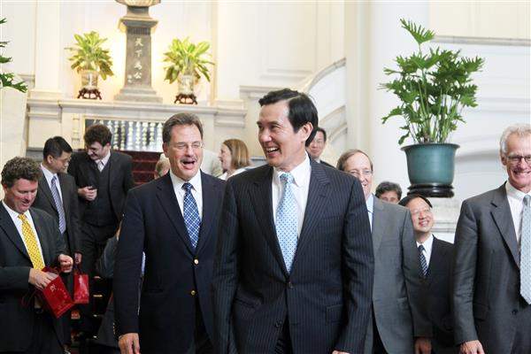 美國史丹佛大學「胡佛研究所」資深研究員賴瑞.戴蒙德(Larry Diamond)與該校「國際問題研究中心」資深研究員法蘭西斯.福山(Francis Fukuyama)等與會學者一行,下午由內政部長江宜樺陪同,前來總統府晉見總統,國家安全會議諮詢委員董國猷也在座。