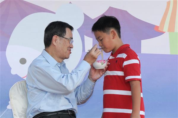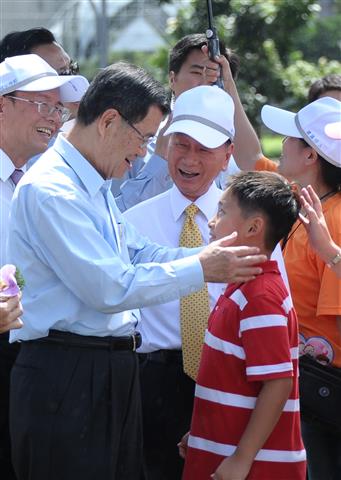 蕭萬長副總統上午出席「慶祝建國百年-樂活祖孫心、幸福向前行」全國祖孫嘉年華活動。