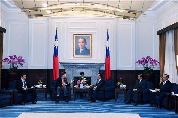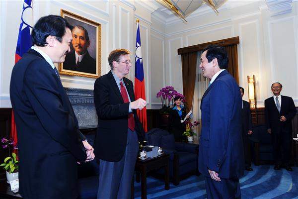 馬英九總統上午接見行政院科技顧問代表-美國史丹佛大學研究中心卡爾森(Curtis R. Carlson)博士,代表政府與人民誠摯歡迎訪賓來台,與國人分享國家與企業創新的專業卓見。
