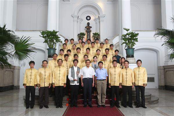 訪賓一行由該團藝術總監聶焱庠率領、行政院文建會主任委員盛治仁陪同,前來總統府晉見總統,總統府第三局局長張國葆也在座。