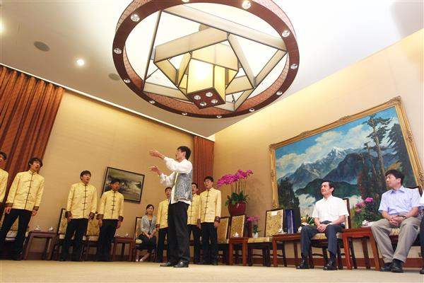 馬英九總統上午接見「拉縴人男聲合唱團」全體團員,團員們現場獻唱「夜之歌」(Nachgesang)及「奉獻」二首曲目,美妙的樂音繚繞動人;總統希望未來能結合國內各藝文團體的力量,增加演出機會與場次,讓更多國人及來台觀光客體驗台灣文化的菁華。