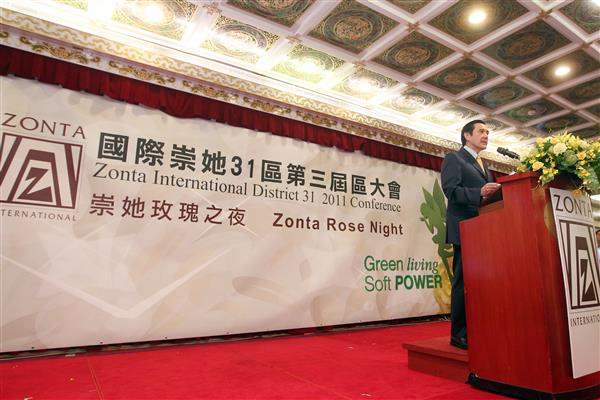 總統說,「國際崇她社」(Zonta International)在1919年創立於美國芝加哥,並於1964年成立臺灣分區—「第31區」,引進許多先進觀念,增加國內婦女領袖對國際動態的瞭解;多年來,該社秉持誠實信賴的精神,促進婦女地位的提升,成效豐碩,因此特別要表達誠摯謝忱,並預祝大會圓滿成功。