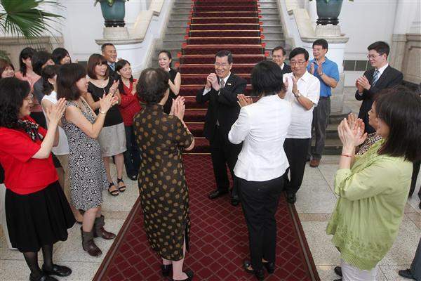 訪賓一行由該校董事長李尹緒瑛與校長李珀率領,教育部次長陳益興陪同,前來總統府拜會副總統。