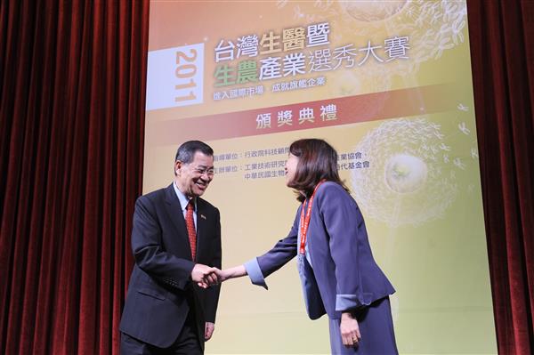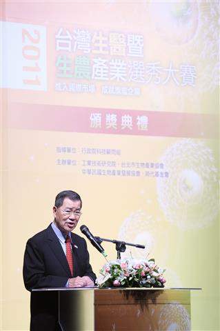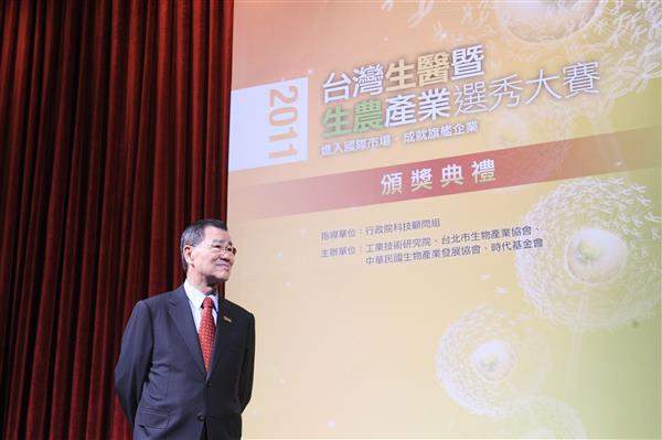 蕭萬長副總統下午出席「臺灣生醫暨生農產業選秀大賽頒獎典禮」,親自頒發「生醫組」及「生農組」等12家優選企業,肯定其成就與貢獻,並期勉業者百尺竿頭、更進一步,共創臺灣生技產業的新未來。