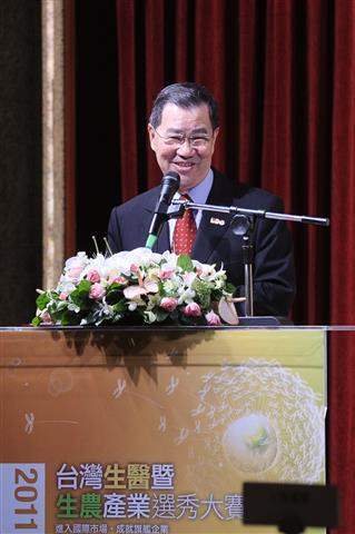 副總統致詞時表示,他每年均出席本項頒獎典禮,代表他對生醫與生農產業發展的高度期許與信心,尤其業者以優質的研發能量,結合高價值的技術及發展資源,充分發揮臺灣生技產業創新、靈活的特性,並持續累積獨特的利基,更令人感佩。
