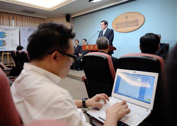 馬英九總統下午在總統府召開記者會,宣布中央行政機關室內空間將開放免費無線上網,除提供民眾更便捷的網路服務,也希望藉此保障國人數位公民權,縮減國內數位落差,進而打造「無線臺灣」。