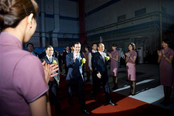 總統指出,有感於國內的交通產業發展需要龐大且有效率的航空業支撐,他上任後積極推動兩岸協商,逐步實施包括週末、平日包機、開放兩岸直航等。3年來,兩岸間的飛行班機益加頻繁,預估下個月可達到558班次,也將使部分營運狀況較差的航空公司重振雄風。