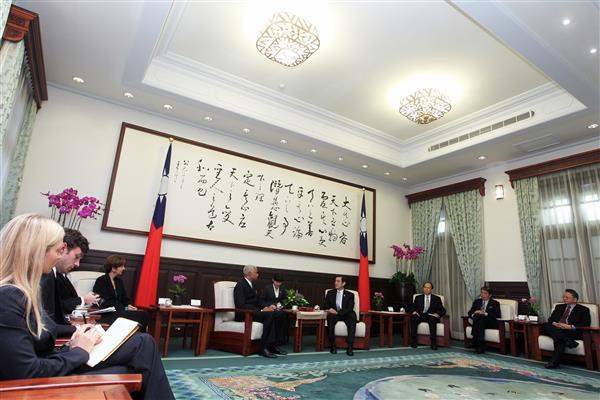 訪賓一行由外交部政務次長沈呂巡及「美國在臺協會」(AIT)代理副處長萬如意(Julie Kavanagh)陪同,前來總統府晉見總統,國家安全會議副秘書長劉志攻也在座。