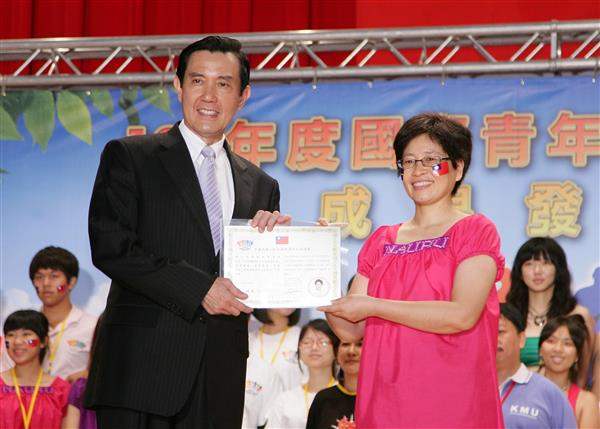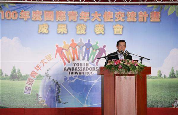 馬英九總統上午出席「100年國際青年大使交流計畫成果發表會」,除現場觀賞多項精采演出,並頒發青年大使證書予參與交流計畫的同學,肯定他們的優異表現。