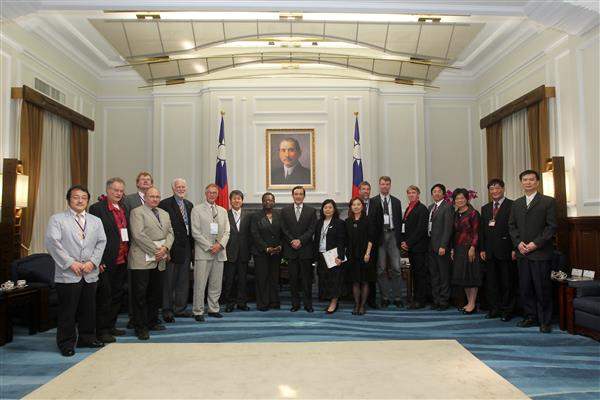 馬英九總統下午接見「社會住宅國際研討會」與會國際學者,重申我政府積極改善國內房價與住宅問題的決心與努力,並強調將貫徹落實「居住正義」目標,實踐社會公義。