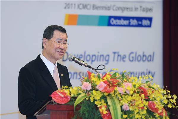 蕭萬長副總統上午出席2011「國際管理顧問協會」(International Council of Management Consulting Institutes, ICMCI)理事會雙年會開幕式,代表中華民國政府與人民歡迎來自30個國家、世界頂尖的管理顧問與會,並期盼在ICMCI的國際合作平臺上,推動會員的合作交流,以提升會員的專業能力與服務水準,讓管理顧問業更有能力為政府與各國企業提供更佳的服務。