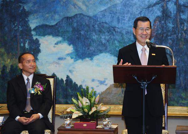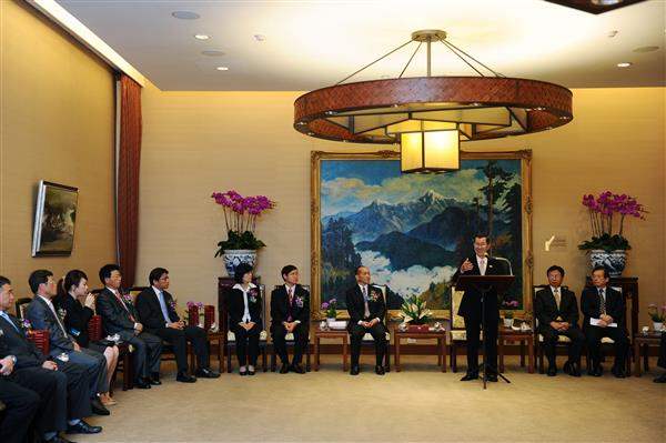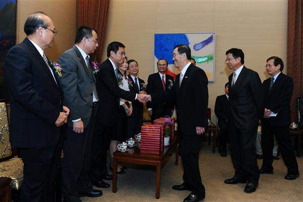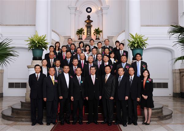 蕭萬長副總統上午接見100年第三回「創造就業貢獻獎」得獎業者,對獲獎企業協助政府創造就業機會、促進社會安定的努力,表達肯定與感謝之意。