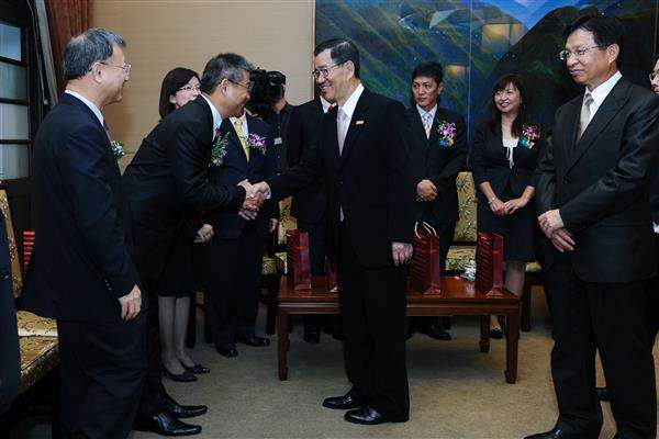 訪賓一行由經濟部次長林聖忠及行政院勞工委員會副主委郭芳煜陪同,前來總統府拜會副總統。