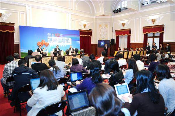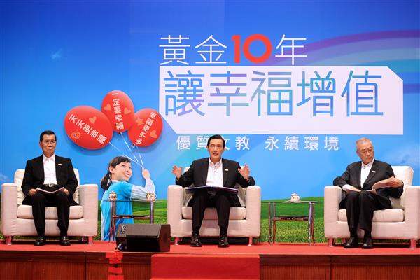 馬英九總統下午在總統府主持「黃金十年」系列第三場記者會,說明國家發展的第四個願景「優質文教」及第五個願景「永續環境」。