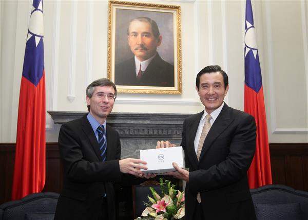 馬英九總統上午接見歐洲經貿辦事處新任處長龐維德 (Frederic Laplanche),代表我政府與人民歡迎龐處長來華履新,並期許我與歐盟雙邊關係持續茁壯成長。