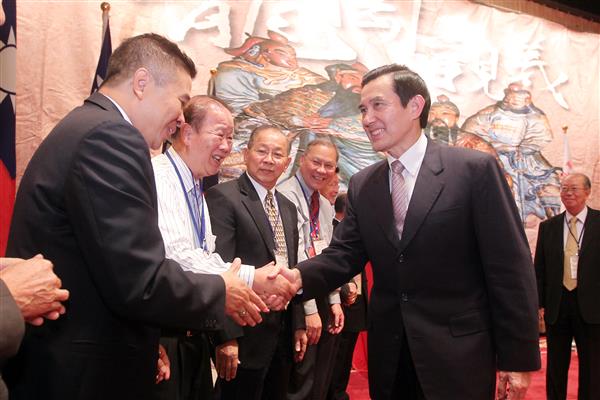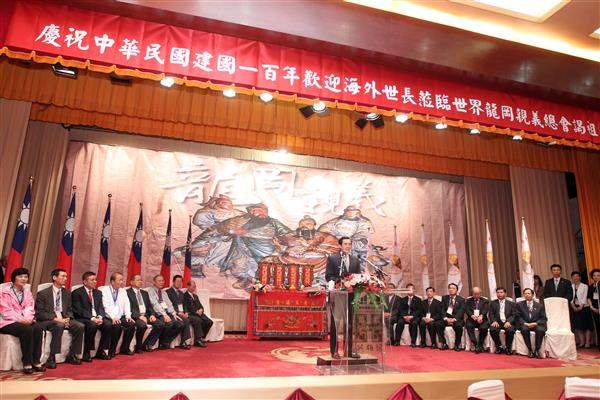 馬英九總統晚間由總統府資政趙守博、副秘書長劉寶貴及僑務委員會副委員長薛盛華等陪同,出席「世界龍岡親義總會成立50週年謁祖」餐會,對該會先進遠從海內外各地前來慶祝中華民國建國一百歲生日,表達竭誠歡迎之意。