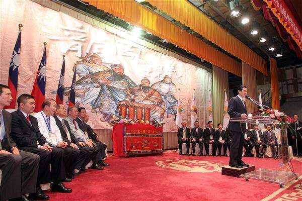 總統致詞時指出,龍岡親義源起於1,800多年前,東漢三國時代的劉備、關羽、張飛及趙雲結為四姓昆仲,以「忠」、「義」、「仁」、「勇」做為核心價值,在廣東開平龍岡建廟薪傳遺緒,從此龍岡親義會在世界各地,包括臺灣、中國大陸、東南亞及北美等地區開枝散葉,目前會員人數已超過200多萬人,是華人社會最龐大的宗親團體。