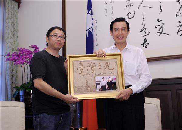 馬英九總統上午在總統府接見「臺灣之光系列人物」--數位互動藝術家黃心健老師,對黃老師透過數位藝術的手法,讓傳統的藝術型態展現全新面貌,表達肯定與敬佩之意。