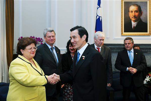 馬英九總統下午接見德國國會「友臺小組」訪華團,除感謝訪賓前來參與我建國一百年國慶大典,亦期盼歐洲與臺灣進行策略聯盟,共同開發大陸市場。