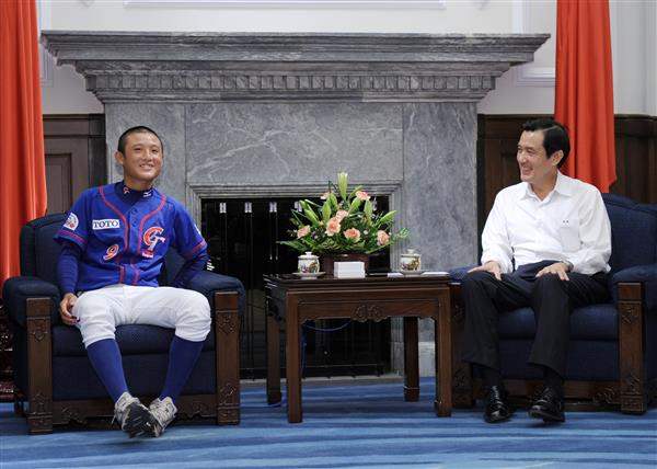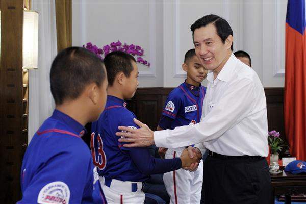 馬英九總統上午接見參加「美國小馬聯盟野馬級少棒錦標賽」的中華龜山少棒代表隊,對中華小將拿下世界冠軍為國爭光,表達嘉勉之意。