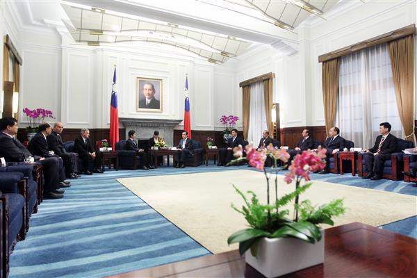 訪賓一行由臺北市長郝龍斌、教育部政務次長林聰明陪同,前來總統府晉見總統,國家安全會議諮詢委員董國猷也在座。