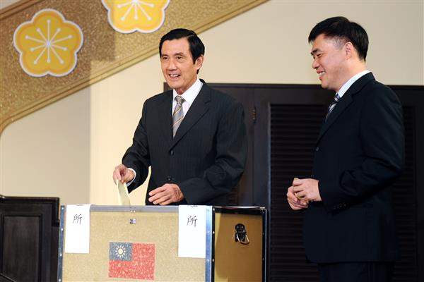 總統致詞完畢後與臺北市長郝龍斌、抗日先烈吉星文以及臺灣抗日將領林祖密、李友邦的遺族後裔一同為「抗戰勝利暨臺灣光復紀念碑」碑文揭幕,見證臺灣光復的艱辛歷程。隨後,總統參觀「慶祝臺灣光復–百年來臺灣地方自治特展」,回顧我國民主實踐歷程,並與郝龍斌市長就展場之選舉文宣品實地模擬投票作業,以具體行動表達對民主自治的肯定。