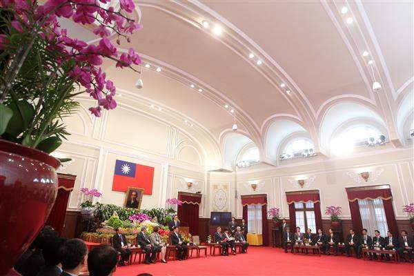 馬英九總統上午在總統府接見「中華民國牙醫師公會」全國聯合會理監事幹部,除肯定該公會對促進國人口腔健康的卓越貢獻,並強調政府將持續努力,致力改善醫護人員的福利與執業環境。