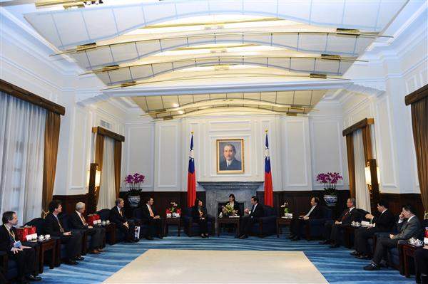 訪賓一行由外交部主任秘書鄭天授陪同,前來總統府晉見總統,國家安全會議副秘書長劉志攻也在座。