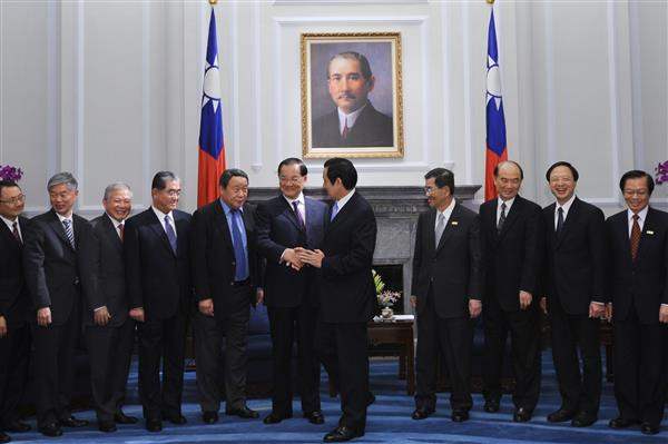 馬英九總統下午接見將於本月10日啟程出席2011年第19屆「亞太經合會議(APEC)經濟領袖會議」的我國代表團一行,並期盼國內產官學界共同透過APEC平台,讓國際社會瞭解中華民國在世界經濟版圖的重要性及所做的努力,以進一步提升我國際地位。