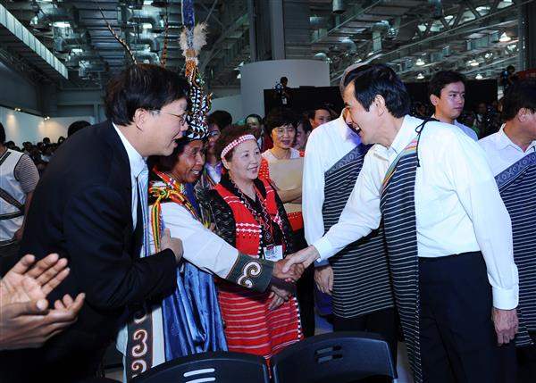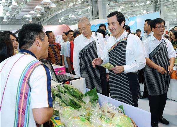 建國一百年「原住民族產業博覽會」上午於「臺北國際花卉博覽會」圓山園區爭豔館正式開幕,馬英九總統特地身穿泰雅族披肩前往致詞,並頒發「第二屆原住民族工藝薪傳獎」予5位原住民阿公阿嬤,以表揚渠等傳承及發揚原住民族工藝的傑出表現,包括行政院長吳敦義及行政院原住民族委員會主任委員孫大川均陪同出席。