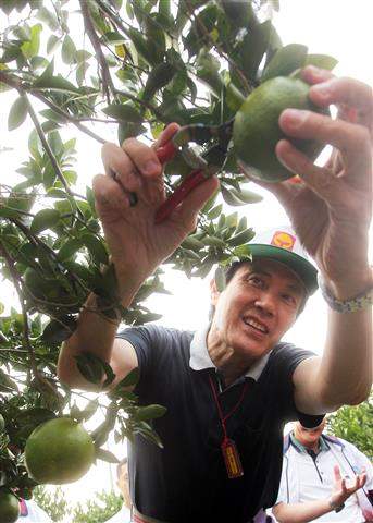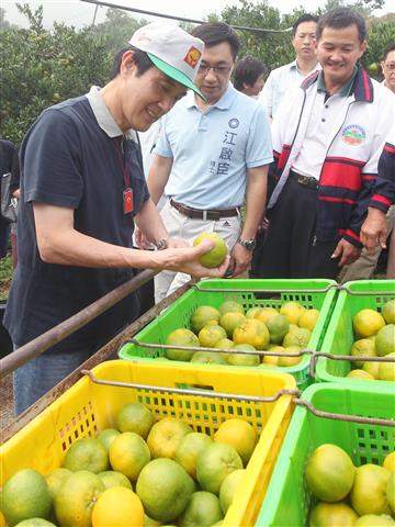 稍早,經過一夜住宿民間友人江文盛家中,上午七時許,總統在江家家屬包括江春男、江啟臣等陪同下前往江萬吉果園參觀,除與在場的豐原區果樹產銷班第一班成員溫馨互動並親自採摘椪柑、現場品嚐。總統盛讚累累果實水份飽滿,甜度亦高,對農民朋友的用心與辛勞,並獲致豐碩的成果,特別表達肯定與感謝之意。