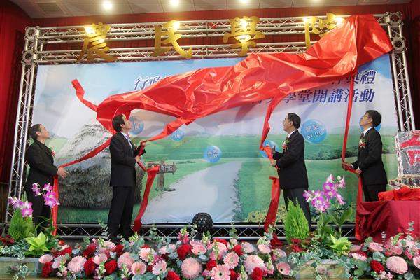 馬英九總統上午由農委會主委陳武雄、農委會農業試驗所所長陳駿季、臺灣奧美集團董事長白崇亮陪同,出席行政院農委會「農民學院」揭幕儀式,與在場貴賓共同以水注入刻有「臺灣農業」四字的冰雕,象徵為臺灣農業發展灌注活力,以及對該學院協助農友進行學術經驗交流所寄予的高度期許。