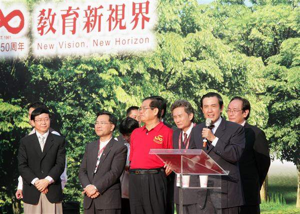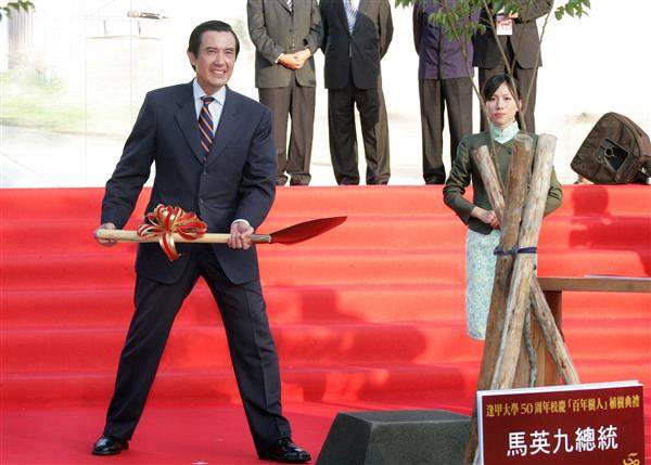 馬英九總統下午出席逢甲大學50週年校慶,針對青年就學、就業與成家等面向,提出整體青年政策藍圖與願景,隨後由行政院青輔會主委李允傑、逢甲大學校長張保隆等人陪同,種植臺灣櫸木,與全體師生同賀該校校慶。
