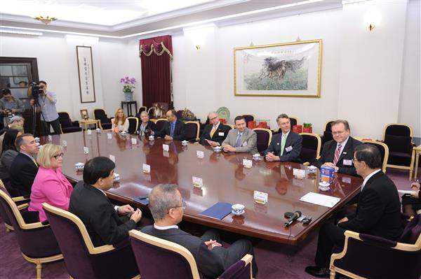 「美國民主黨州主席協會」會長、新罕布夏州主席巴克雷(Raymond Buckley)等一行12人,由外交部主任秘書鄭天授陪同,前來總統府拜會副總統。
