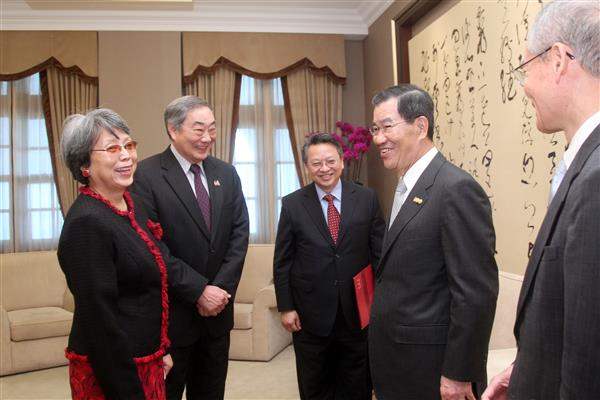 任筑山博士伉儷由外交部主任秘書鄭天授陪同,前來總統府拜會副總統。