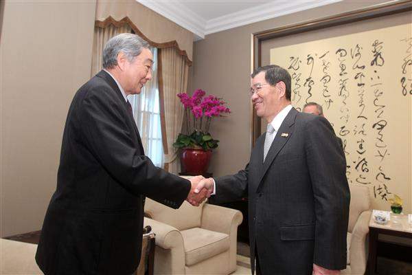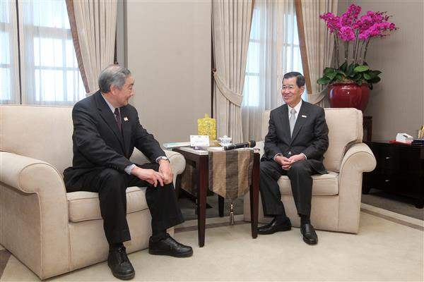 蕭萬長副總統上午接見美國臺裔農業部前次長任筑山博士(Dr. Joseph Jen)伉儷,對訪賓回臺訪問,表達誠摯歡迎之忱。