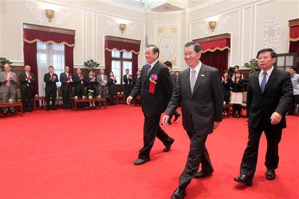 得獎人一行52人由曾永權主任委員、內政部政務次長簡太郎陪同,前來總統府接受副總統道賀。
