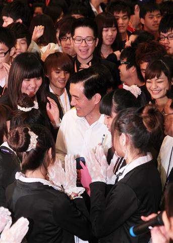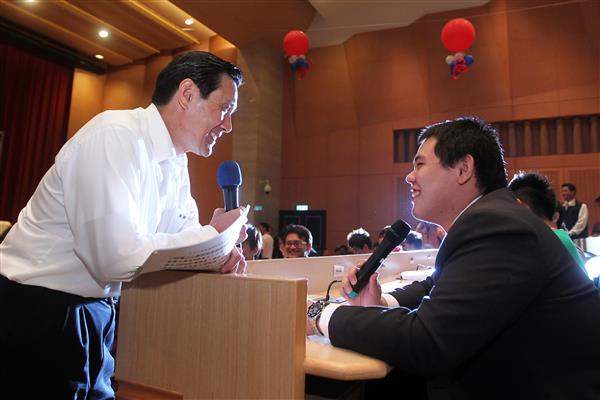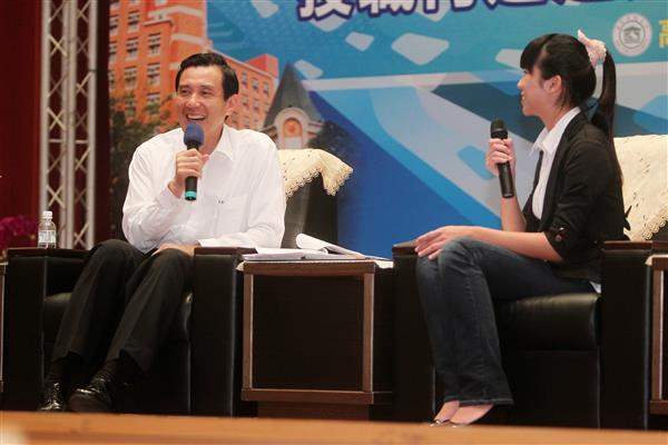 在與南台科技大學學生座談後,馬英九總統晚間再前往高苑科技大學,以「技職再造起飛,用心成就不凡」為題發表專題演說,並就就學貸款、考取證照等問題,詢問同學們的經驗與需求。