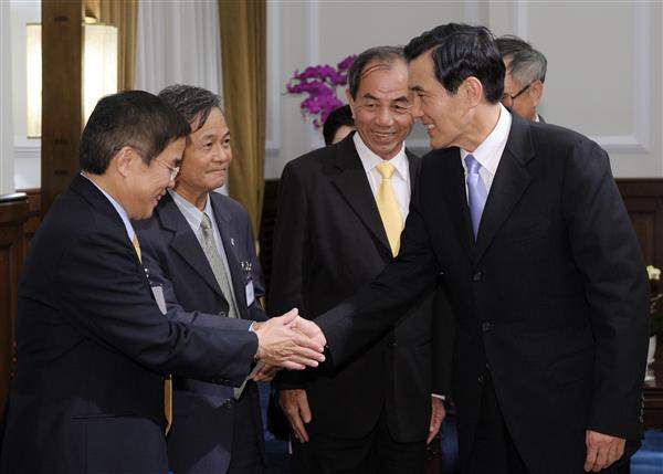 馬英九總統下午第4度接見100年度參與監所教化及保護事業有功人員與團體代表,除肯定法務部與民間協力合作進行更生保護有成,並分享個人及獲獎團體的事蹟與貢獻。