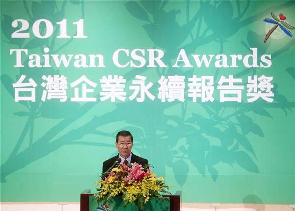 蕭萬長副總統上午在「臺灣永續能源研究基金會」董事長簡又新及行政院環境保護署署長沈世宏陪同下,出席「2011臺灣企業永續報告獎(Taiwan CSR Awards)」頒獎典禮,並期勉該基金會與歷年得獎企業,能繼續發揮影響力,鼓勵所有企業發行永續報告書,使報告書的出版成為產業界的制度與典範。