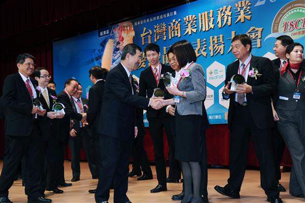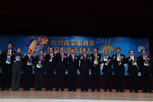 蕭萬長副總統下午出席「2011臺灣商業服務業優良品牌表揚大會暨頒獎典禮」,期許政府部門與企業未來在各種服務業領域,發揮創意及整合資源,共同開創臺灣服務業的國際品牌時代,讓「臺灣服務」(served by Taiwan)成為臺灣經濟的新標誌。