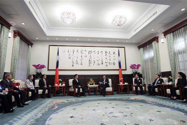 訪賓一行由「全國教師工會總聯合會」理事長劉欽旭率領、教育部長吳清基及銓敘部長張哲琛陪同,前來總統府晉見總統,總統府副秘書長劉寶貴也在座。