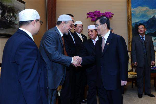 訪賓一行由團長朱雲清率領,「中國回教協會」理事長張明峻陪同,前來總統府晉見副總統。