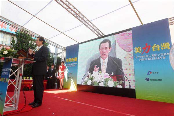 馬英九總統上午出席經濟部所主辦的「北中南老舊工業區之更新與開發計畫」更新成果發表會,並主持「新北產業園區」揭牌儀式,除肯定經濟部推動老舊工業區更新,以及污水處理改善的成果,亦盼由活化再生的過程,厚植傳統產業競爭力。