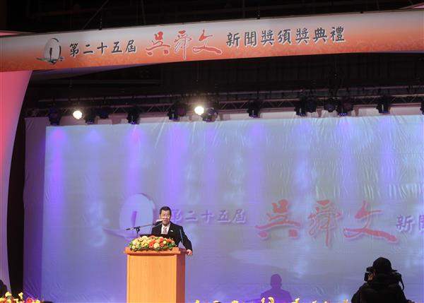 副總統致詞時指出,該獎項是由吳舜文女士於民國75年創辦,不僅提倡公正客觀的新聞報導,亦鼓勵優秀的新聞從業人員,尤其今年欣逢中華民國建國一百年,更增添獎項的時代意義。