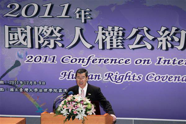 副總統致詞時談到,「公民與政治權利國際公約」及「經濟社會文化權利國際公約」是國際上最重要的人權公約,中華民國早在1967年10月5日就已經簽署,後來因為我國在1971年失去聯合國代表權,以致40多年來都未正式批准兩公約,使我國的人權保障標準始終無法與世界接軌。