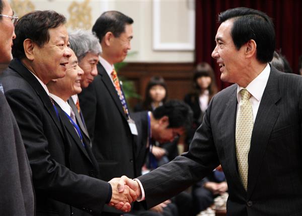 馬英九總統上午接見「中華民國藥師公會全國聯合會」領導幹部,感謝訪賓長期以來發揮藥學專業技能,維護國人健康,並期許大家與政府共同努力,共創「安全用藥、幸福人生、健康臺灣」的美好目標。
