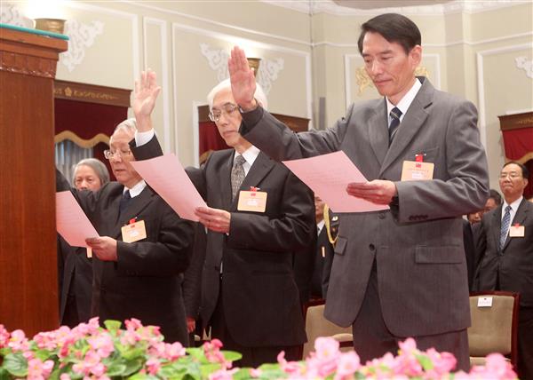 馬英九總統上午出席100年12月中樞慶祝行憲暨總統府月會與宣誓典禮,並聽取司法院長賴浩敏以「人權的啟蒙者、民主的鞏固者、法治的捍衛者—司法在我國行憲過程中扮演的角色」為題發表專題報告。