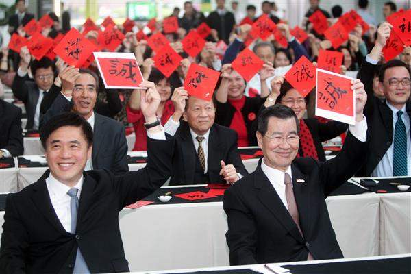 隨後,副總統和101位企業租戶共同揮毫書寫「誠」字,並與書法大師董陽孜、臺北市長郝龍斌、證交所董事長薛琦、「誠」字雕塑共同創作人潘驥建築師、臺灣高鐵公司董事長歐晉德、「臺北101」董事長林鴻明及作家白先勇等人為「臺北101」共同啓「誠」儀式,並參觀「誠」字書法雕塑作品。